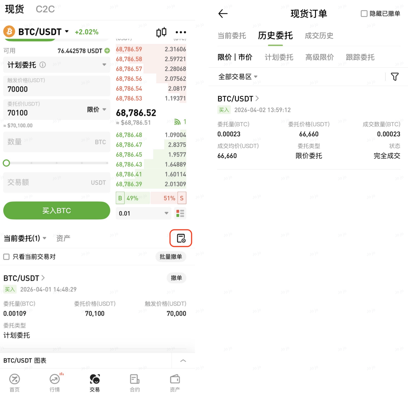 计划委托是一种支持用户提前设置触发价格、委托价格和数量的订单类型。当市场最新成交价格达到设定条件时,系统将自动按照预设参数提交订单。