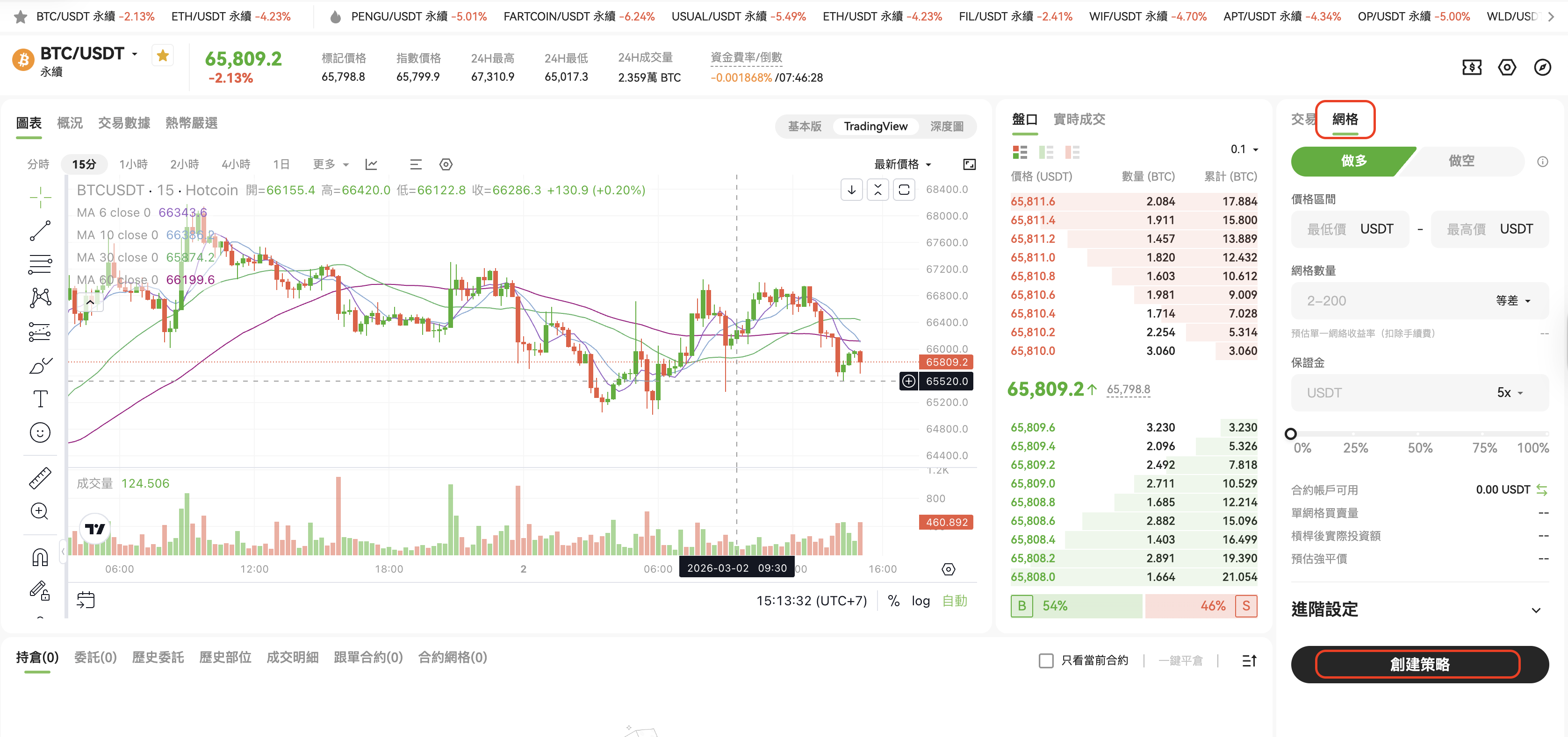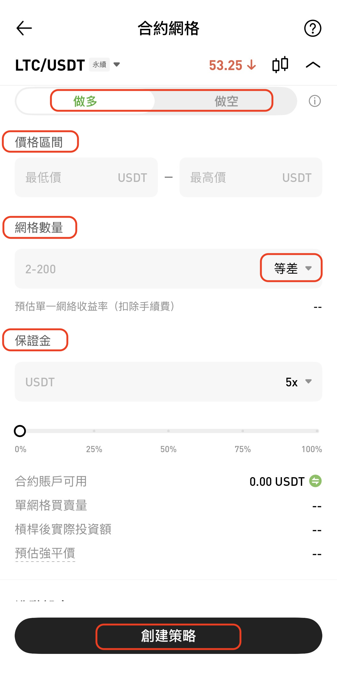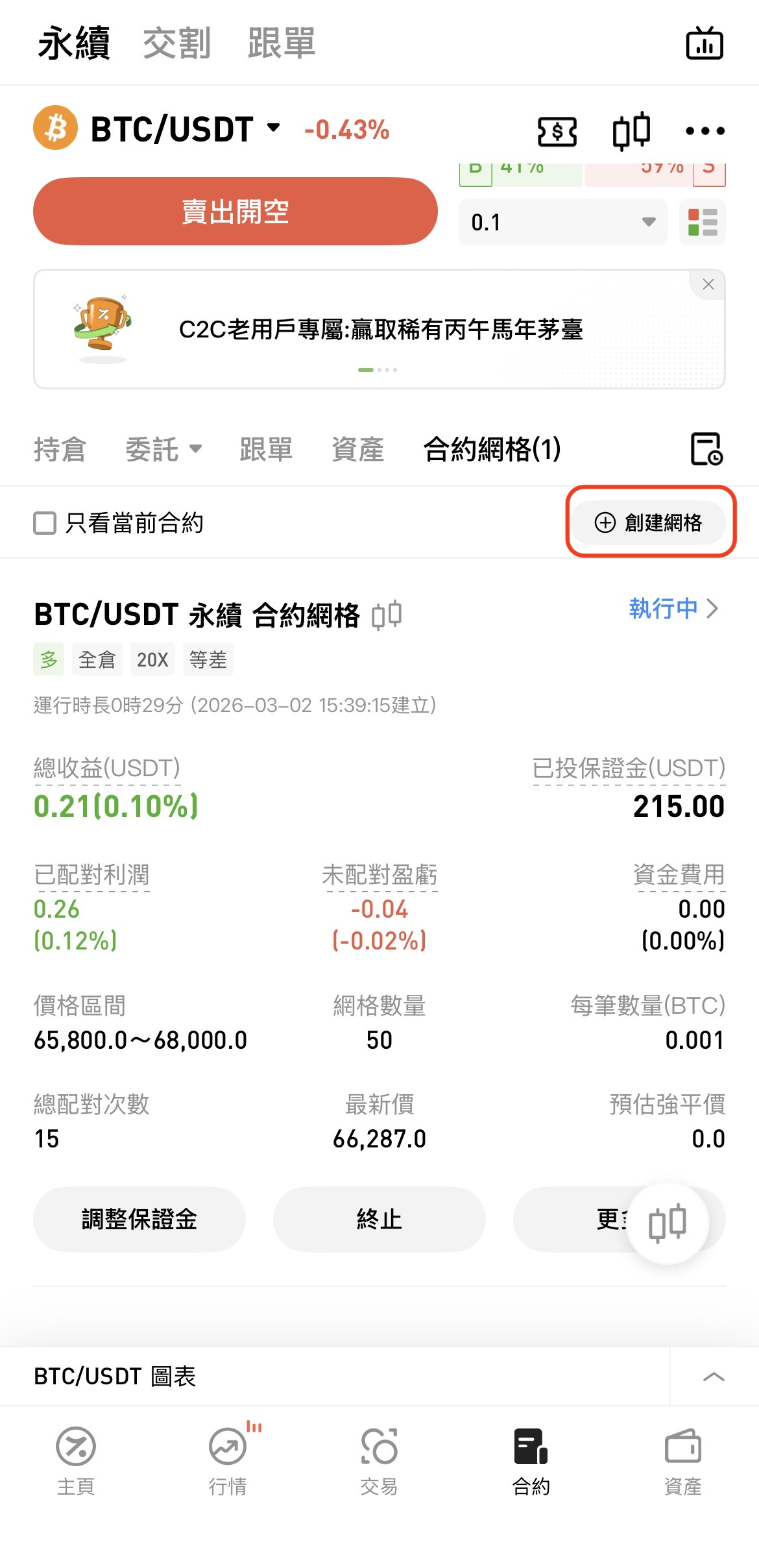 或於合約交易頁面點擊「建立網格」,進入網格建立頁面。