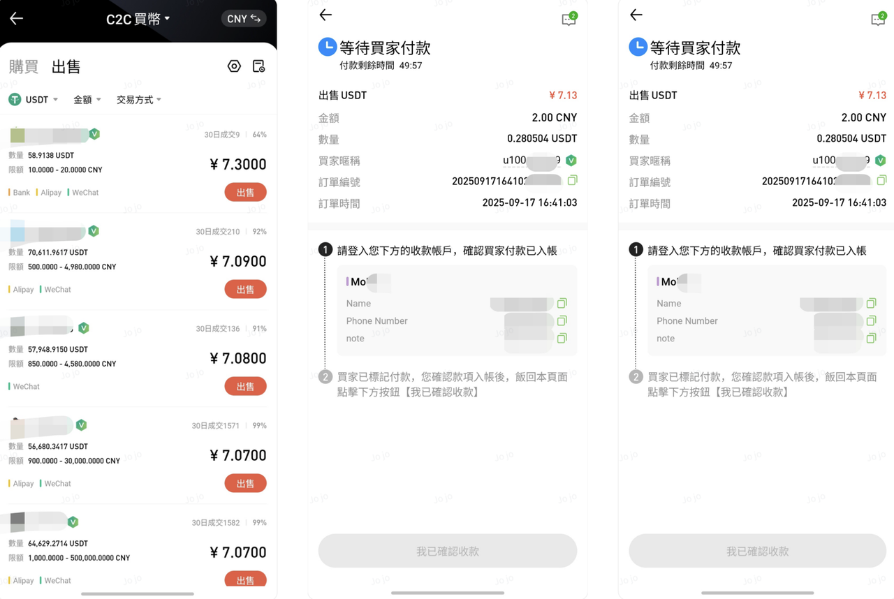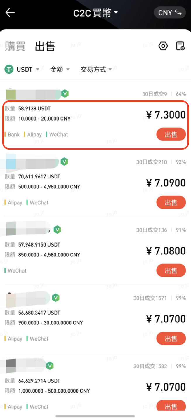 看限額:確保您的出售金額在對方「單筆限額」範圍內