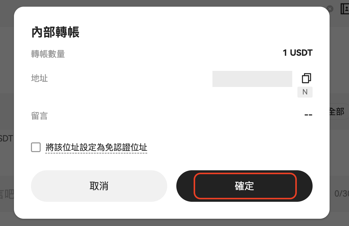 5. 在彈出頁面確認轉帳資訊無誤後,點擊「確定」;